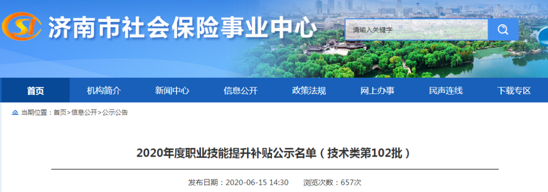 根据山东省人社厅等四部门《关于进一步做好失业保险支持企业稳定就业岗位的通知》(鲁人社字[2019]85号)规定,经审核,拟同意给予周**等692同志发放职业技能提升补贴,现予以公示(名单见附件),公示时间:2020年6月15日至6月19日。公示期间对公示人员有异议可向济南市人力资源社会保障局或济南市社会保险事业中心反映。