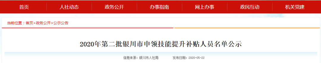 现将2020年第二批银川市申领技能提升补贴人员名单公示予以公示,欢迎社会各界进行监督。