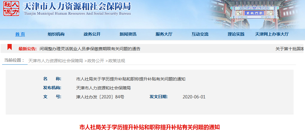 三、天津市关于职称提升补贴的通知