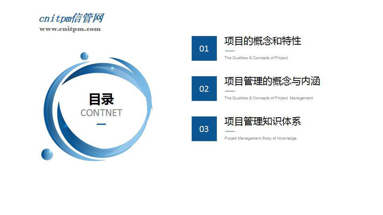 课程内容:项目的概念和特性、项目管理的概念与内涵、项目管理知识体系