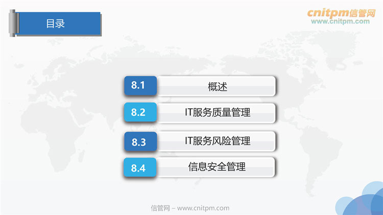 课程内容:概述、it服务质量管理、it服务风险管理、信息安全管理