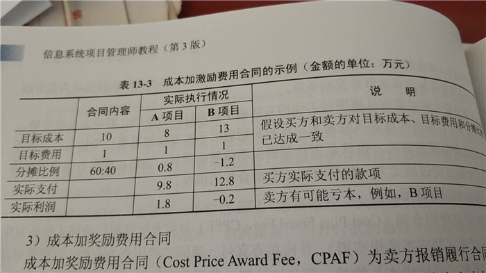 您上边的公式与教材的表格里用的是两种算法,虽然计算结果是一样的,表格里是把成本超支直接当成亏损(负利润)了,按您上边的公式应该是付款总数=目标成本十目标费用十买方应负担的成本超支=10+1+(13-10)*0.6=12.8