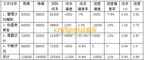 D、根据此表可以分析出该项目的实际进度落后于计划