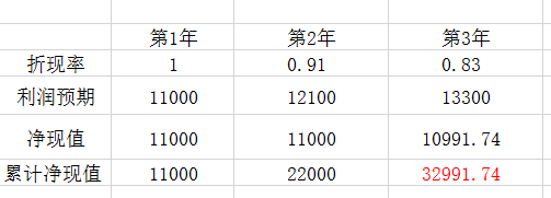 0.1不变是贴现率,变得是年,第二年就是2次方,第三年就是3次方