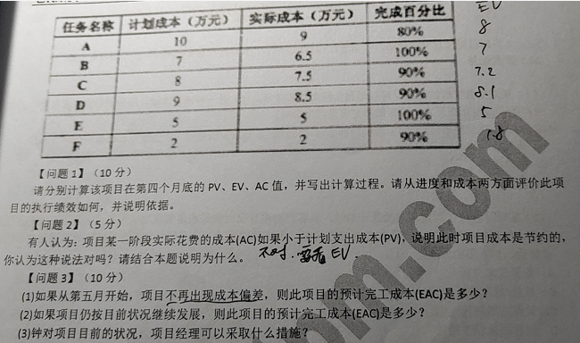 我主要疑问在,这到题目的PV是说的在第四个月的时候的计划成本,为什么就能作为总的BAC来使用,BAC不是应该等于完工时候的PV值总合么?题目里面并没有说第四个月就是计划的完工时间啊?