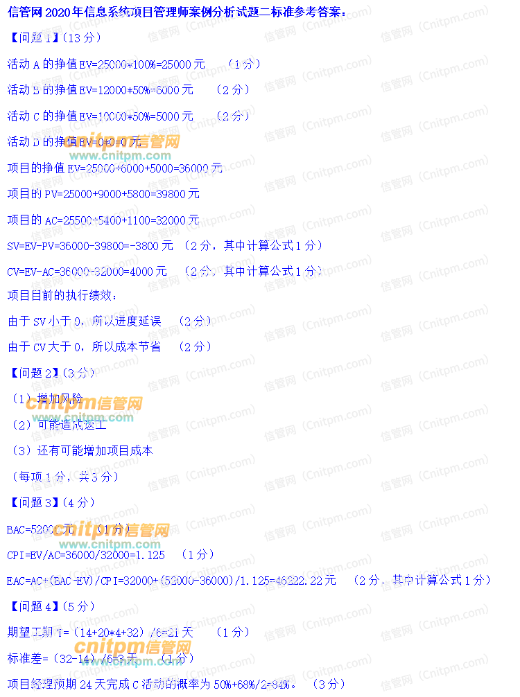 2020年下半年信息系统项目管理师案例分析真题试题二: