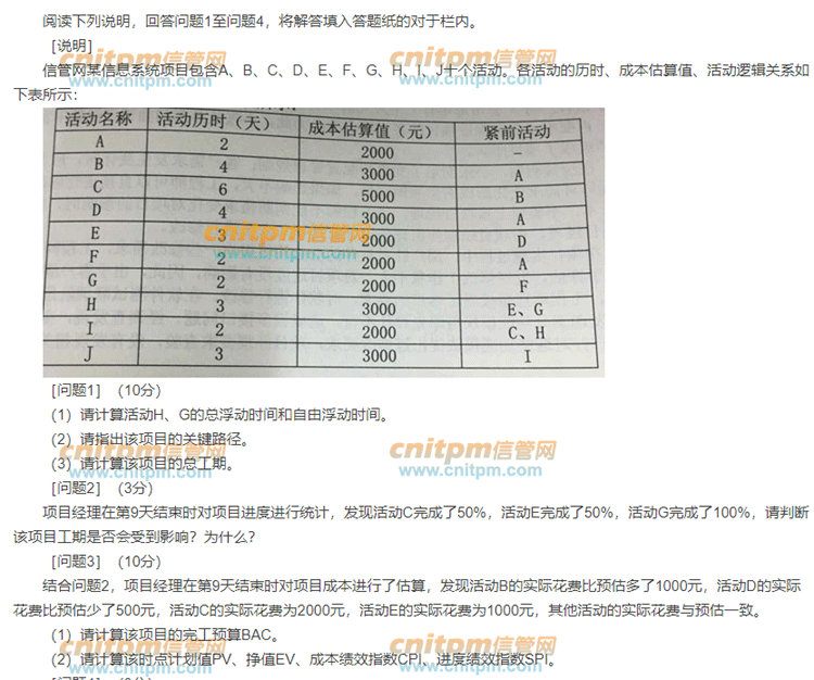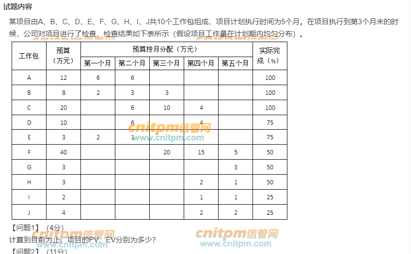 2020年信息系统项目管理师考试已结束,这次考试题目大多数考生都感觉比较简单,唯一有争议的就是案例试题二这个计算题挣值的计算到底是乘以第1列的成本预算还是第2列的计划成本,这里JRS直播结合以往试题官方标准答案给出一些分析。