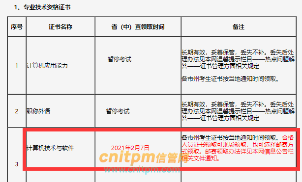 其他省市2020年软考证书领取时间和通知请查看:JRS直播2020年软考证书领取专题