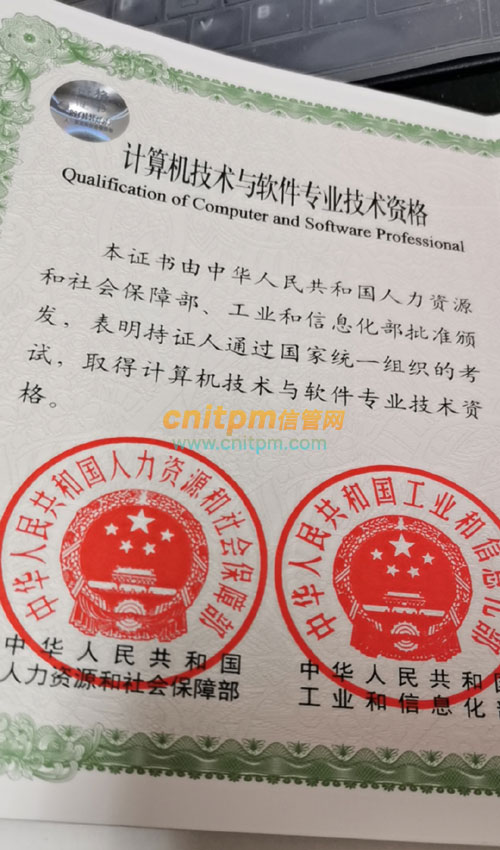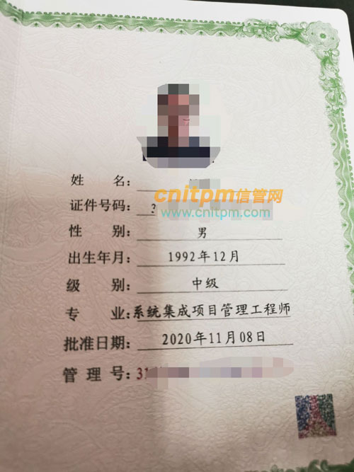 2021年最新领取到的系统集成项目管理工程师证书样本