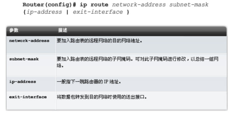 -Router(config)#ip route 0.0.0.0 0.0.0.0 [exit-interface | ip-address ]