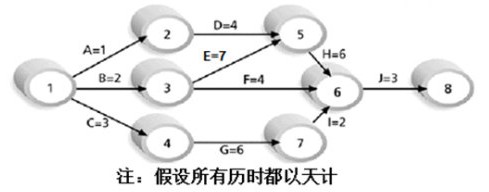 依据下面的项目活动网络图中,该项目历时为( )天。