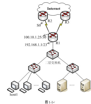 某公司内部局域网采用NAT技术接入Internet,通过双链路R1→R2和R1→R3实现多ISP接入,连接方式如图1-1所示。
