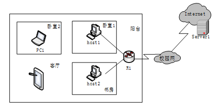 某家庭采用家庭路由器接入校园网,如图1-1所示。在路由器R1上配置有线和无线连接功能,部分配置信息如图1-2所示。