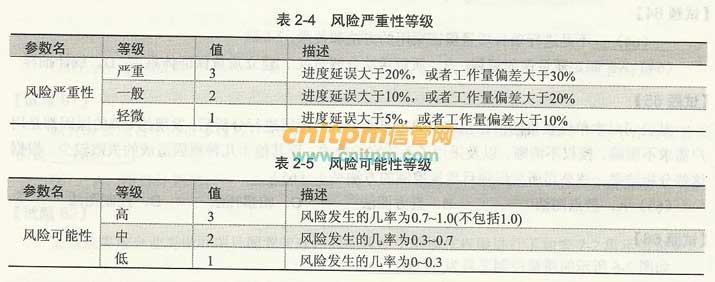 其中,对项目进度延误、工作量偏差的风险严重性等级和风险可能性等级如下表所示: