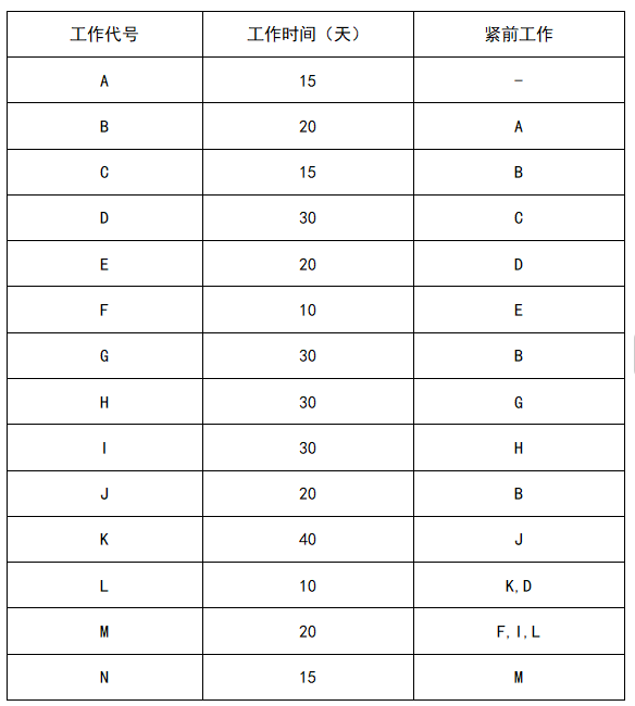 王工程师是负责某公司数字化转型项目的项目经理,有多年从事信息化项目管理的经验。王工为了更好地对项目的进度进行管理,对每个工作的历时进行了估算,并列出了个工作间的依赖关系,如下表所示。