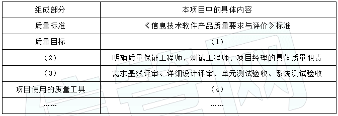 结合案例,并参考示例,补充完整如下的本项目质量管理计划表。