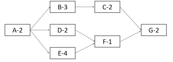 试题二(20分)【说明】某项目的进度计划如下图(A-2表示A的工期为2个月):项目进行到第6个月,完成情况如下(单位:万),此时实际支出70万元。