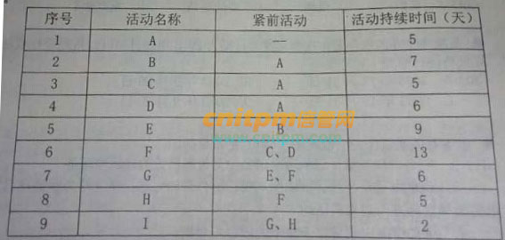某项目各项工作的先后顺序及工作时间如下表所示,该项目的总工期为()天 A、31 B、32 C、33 D、34