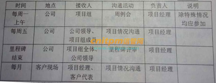 下表是一份简单的项目沟通计划,该计划存在的最严重的问题是() A、缺少沟通时间 B、缺少沟通方式或信息传递方式 C、接收人不明确 D、沟通的负责人不应该都是项目经理