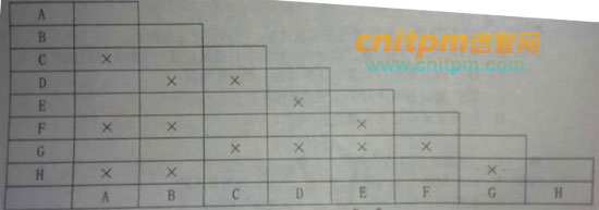 有八种物品A、B、C、D、E、F、G、H要装箱运输,虽然量不大,仅装1箱也装不满,但出于安全考虑,有些物品不能同装一箱。在下表中,符号“×”表示相应的两种物品不能同装一箱。运输这八种物品至少需要装()箱