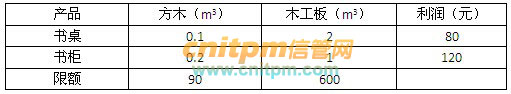 某家具厂有方木材90m3,木工板600m3,生产书桌和书柜所用材料数量及利润如下表: