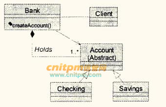 某银行系统采用Factory Method方法描述其不同账户之间的关系,设计出的类图如下所示。其中与Factory Method中的“Creator”角色相对应的类是(1);与“Product”角色相对应的类是(2)。(1)A. Bank B. Account C. Checking D. Savings(2)A. Bank B. Account C. Checking D. Savings