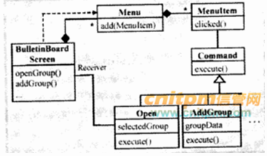 某软件公司欲开发一个Windows平台上的公告板系统。在明确用户需求后,该公司的架构师决定采用Command模式实现该系统的界面显示部分,并设计UML类图如下图所示。图中与Command模式中的“Invoker”角色相对应的类是(1),与“ConcreteCommand”角色相对应的类是(2)。