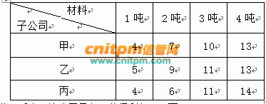 某公司需要将4吨贵金属材料分配给下属的甲、乙、丙三个子公司(单位:吨)。据测算,各子公司得到这些材料后所能获得的利润(单位:万元)见下表:根据此笔,只要材料分配适当,该公司最多可获得利润()万元。A.14 B.16 C.17 D.18
