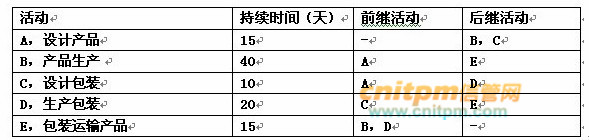 一家公司希望开始一个新的产品线。项目经理确定了下列活动