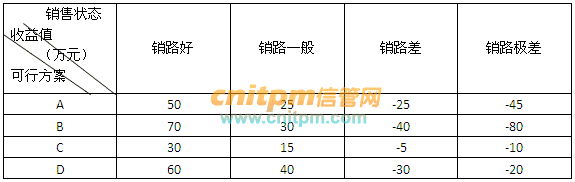 三个备选投资方案的决策损益表如下,如果采用最大最小决策标准(悲观主义),则选择()