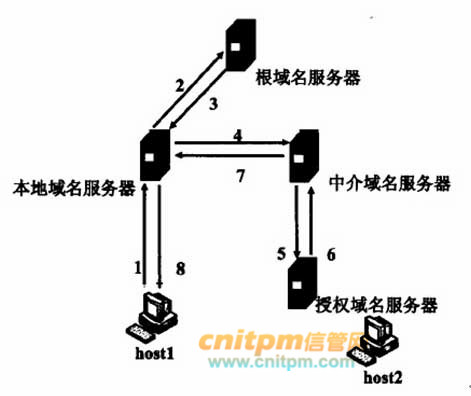 主机host1对host2进行域名查询的过程如下图所示,下列说法中正确的是()。