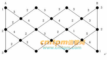 下面的网络图表示从城市A到城市B运煤的各种路线。各线段上的数字表示该线段运煤所需的费用(百元/车)。城市A有三个装货点,城市B有三个卸货点,各点旁标注的数字表示装/卸煤所需的费用(百元/车)。根据该图,从城市A的一个装卸点经过一条路线到城市B的一个卸货点所需的装、运、卸总费用至少为()(百元/车)。A. 19 B. 20C. 21 D. 22