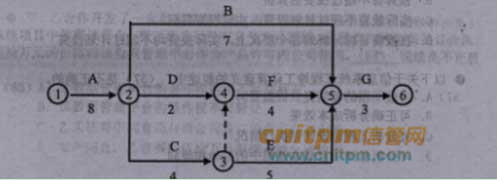 某工程网络计划如下图所示.(时间单位:天),该工程的工期为 (1) 天,工作D的自由时差是(2)天。如因建设单位原因,原定任务D由2天延长至5天,则建设单位应当弥补承建单位工期(3)天。(1)A. 18 B.19 C. 20 D.21(2)A. 3 B .2 C. 1 D. 0(3)A. 3 B .2 C. 1 D. 0