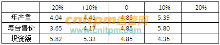 某企业有一投资方案,每天生产某种设备1500台,生成成本每台700元,预计售价每台1800元,估算投资额为800万元,该投资方案寿命为7年,假设年产量,每台售价和投资额均有可能在+-20%的范围内变动,就这三个不确定因素对投资回收期的敏感性分析得到了下表中的部分投资回收期数据(空缺部分尚未计算),根据投资回收期的计算结果可知,这三个不确定性因素中,()是高风险因素(可能导致投资风险) A、年产量B、每台售价C、投资额D、全部