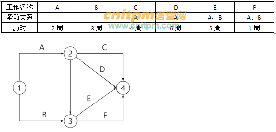 已知某系统由ABCDEF六个活动构成,项目实习人员根据活动逻辑关系及历时等信息绘制了该系统的网络图,并给出了该系统的工期为9周,项目组其他成员纷纷提出意见,以下意见中,( )是正确的。A、逻辑关系错误,项目工期应为7周B、有循环问路,项目工期是正确的C、节点序号编排不对,项目工期是正确的D、项目工期为8周