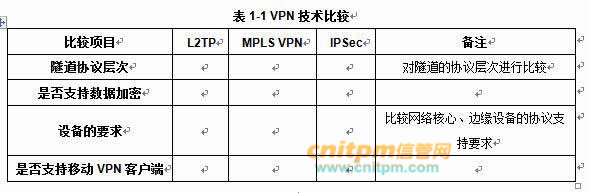 电子政务外网承载VPN,可以采用L2TP、MPLS VPN、IPSec三类技术,请对三种技术进行比较,将有关内容填入表1-1的空白中