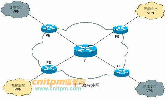 某省准备建立电子政务网络平台,实现全省上下各级部门之间的信息交换和资源共享。遵照《国家信息化领导小组关于推进国家电子政务网络建设的意见》的要求,电子政务网络分为电子政务外网和电子政务内网,该省即将建设的网络平台被定性为“非涉密”的电子政务外网。在第一期工程中,主要建设覆盖省直部门和各地市州的电子政务外网。电子政务外网是办公自动化、行政审批、电子监察等跨部门应用系统的运行网络,还是一个网络承载平台,可以承载各类VPN。例如,在当前的省级外网平台建设中,外网平台就需要承载两个VPN:(1)互连各个部门的国库支付VPN;(2)互连各个部门的视频监控VPN。