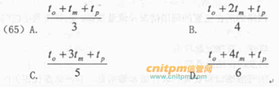 在对项目中某项活动所耗费的时间进行估算时,可给出三个时间估计:乐观时间to、悲观时间tp、最可能时间tm,则该项活动的期望工期为() 。A. AB. BC. CD. D