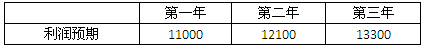 某项目的利润预期(单元:元)如下表所示,贴现率为10%,则第三年结束时利润总额的净现值约为()元A、30000B、33000C、36000D、40444