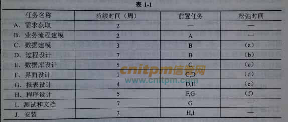 【说明】 某软件企业为电信公司开发一套网上营业厅系统,以提升服务的质量和效率。项目组经过分析,列出了项目开发过程中的主要任务、持续时间和所依赖的前置任务,如表1-1所示。在此基础上,可分别绘制出管理该系统开发过程的PERT图和Gantt图。 表1-1
