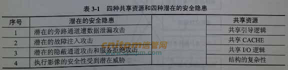 【问题2】(11分) 具有虚拟化能力的嵌入式实时操作系统目前仅支持单核处理器,而不支持多核,请用100字以内的文字说明其主要原因。表3-1给出如果采用虚拟化技术支持多核时存在的四种共享资源和四种潜在安全隐患,请用箭线指出这些潜在安全隐患分别会发生在哪种共享资源的环境下。