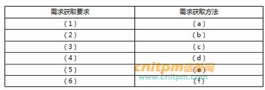 【问题2】(12分) 针对题目中所描述的需求获取要求(1)~(6),选择最适合的需求获取方法填入表1-1中的(a)~(f)处。 表1-1 需求获取方法选择