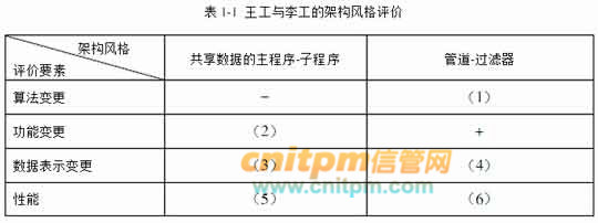 【问题2】(12分) 请完成表1-1中的空白部分(用+表示优、-表示差),对王工和李工提出的架构风格进行评价,并指出采用李工方案的原因。