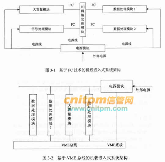 【问题1】(14分) 在设计系统架构时,李工提出了如图3-1所示的系统架构,即模块间的网络通信采用光纤通信(Fiber Channel,FC)技术,而王工认为应采用VME总线架构,如图3-2所示。王工的理由是公司多年来基于VME总线技术设计了多个产品,技术成熟,且费用较小。但公司经过评审后,决定采用3-1所示的基于FC的系统结构。