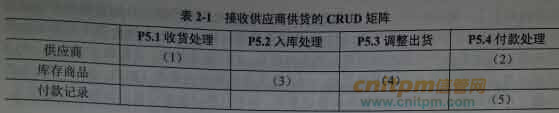 系统建模过程中为了保证数据模型和过程模型的一致性,需要通过数据-过程-CRUD矩阵来实现数据模型祁过程模型的同步,请在表2-1所示CRUD矩阵(1)~(5)中填入相关操作。