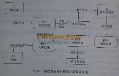 小王根据自己观察的过程创建了该事件的1层数据流图,如图2-1所示。