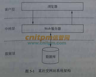 某软件公司开发运维了一个社交网站系统,该系统基于开源软件平台LAMP(Linux+Apache+MySQL+PHP)构建,运行一段时间以来,随着用户数量及访问量的增加,系统在Web服务器负载、磁盘I/O等方面出现了明显瓶颈,已不能满足大量客户端并发访问的要求,因此公司成立了专门的项目组,拟对系统架构进行调整以提高系统并发处理能力。目前系统采用了传统的三层结构,系统架构如下图所示。