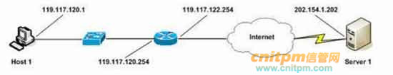 终端服务可以使客户远程操作服务器,Windows Server2003中开启终端服务时需要分别安装终端服务的服务器端和客户端,图3-1为客户机Host1连接终端服务器Server1的网络拓扑示意图。