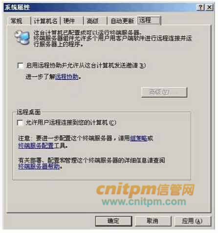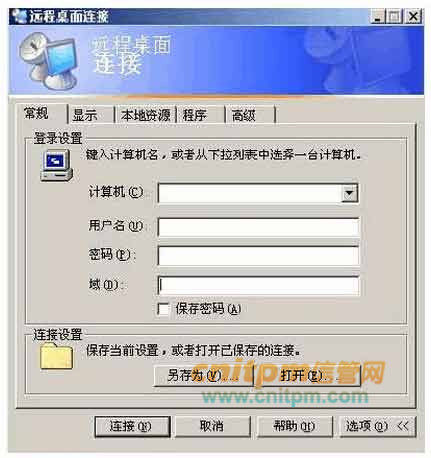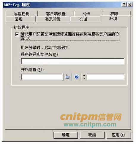 图3-2是Server1“系统属性”的“远程”选项卡,图3-3是Server1“RDP-Tcp属性”的“环境”选项卡,图3-4为Host1采用终端服务登录Server1的用户登录界面。