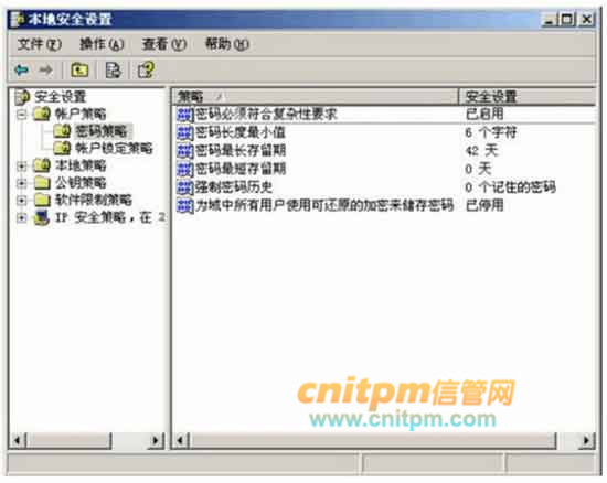 在Windows Sever 2003系统中,用户分为本地用户和域用户,本地用户的安全策略用“本地安全策略”设置,域用户的安全策略通过活动目录管理。